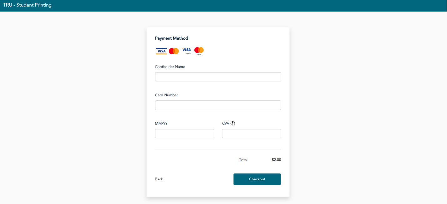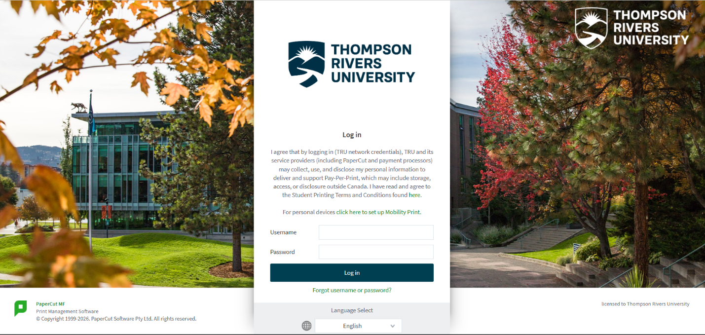 1. Log in to the Pay-Per-Print portal: mytruprint.tru.ca/user.