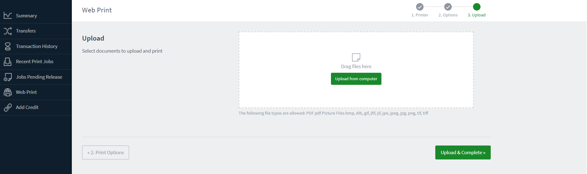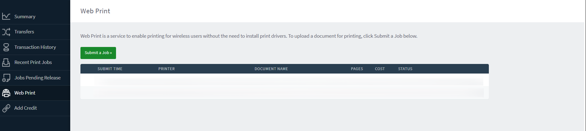 2. Select Web Print in the navigation, then choose Submit a Job.