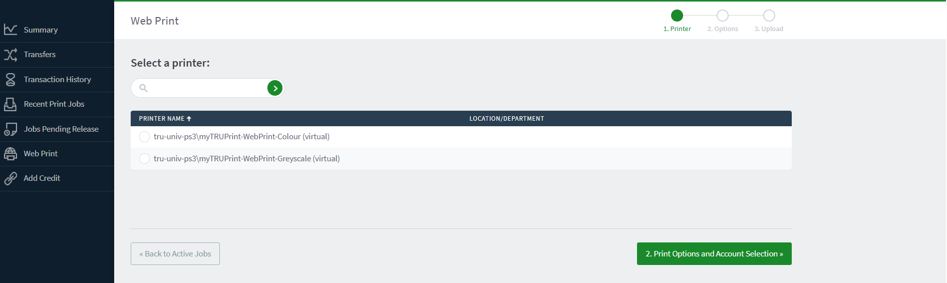 • Colour: tru-univ-ps3\myTRUPrint-WebPrint-Colour (virtual) — prints colour + duplex only.